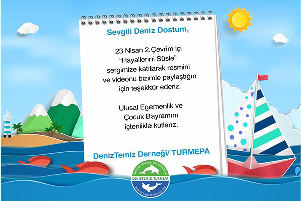 23 Nisan Ulusal Egemenlik ve Çocuk Bayramı’nın 101’inci yılında çocuklar, “Hayallerini Süsle’’ sloganı ile TURMEPA’nın düzenlediği online sergiye davet edildi. Türkiye’nin dört bir köşesinden, KKTC ve Almanya’dan 110 adet resim, afiş, poster, video çalışması TURMEPA’nın Instagram hesabı ve e-mail adresine gönderildi. Toplanan bu çalışmalar online sergiye dönüştürüldü. Sergide yer alan çalışmaların sahiplerine online katılım sertifikaları gönderildi.